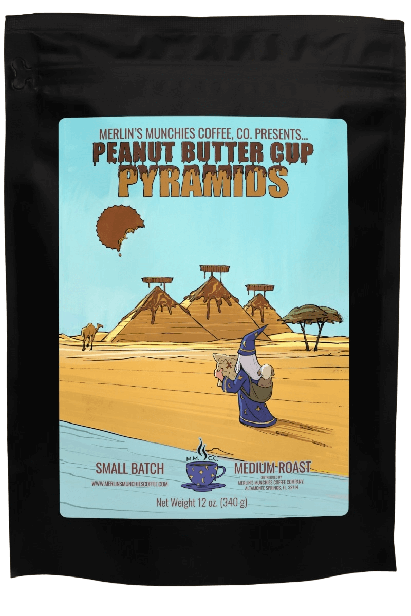 Everyone on Earth is familiar with the Great Pyramids of Giza. They may not realize there is another set of pyramids FAR OLDER and WAY MORE FUN! Deep in the Chocolate Multiverse lies The Peanut Butter Cup Pyramids...Merlin has year-round access to these delightful flavors, and he's bringing them to a coffee cup near you. Enjoy!
